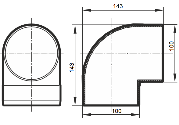 Тип:Круглое сечение (диаметр 100 мм), Колено